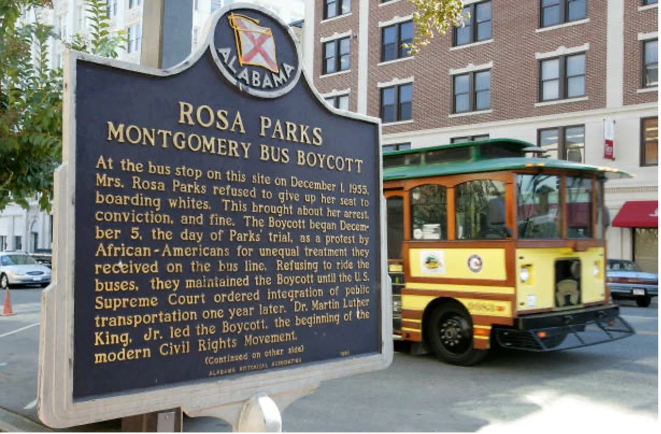 The bus stop where Parks waited on that day in December can be found inside the Court Square Historic District. A historic marker with a message paying homage to Parks sits in front of the Central Bank Building, the exact spot where she helped set progress into motion.